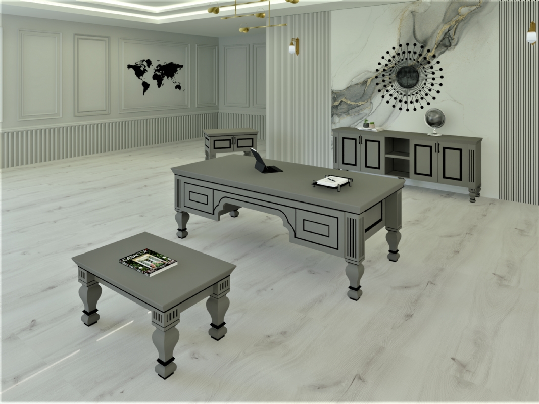Ofis alanlarınıza modern bir dokunuş katacak bu şık çalışma seti, kaliteli ahşap malzemesiyle öne çıkıyor. Zarif cilası, ofisinizin atmosferini canlandırırken, ergonomik tasarımı uzun saatler süren çalışmalarda konfor sağlar. Fonksiyonel yapısı ve geniş yüzey alanı, verimliliğinizi artırmak için idealdir. Sade ama etkileyici detayları, her türlü ofis dekoruna uyum sağlarken profesyonel bir çalışma ortamı oluşturmanıza yardımcı olur. İş yerinizdeki verimliliği artırmak ve şıklığı yakalamak için mükemmel bir tercihtir.