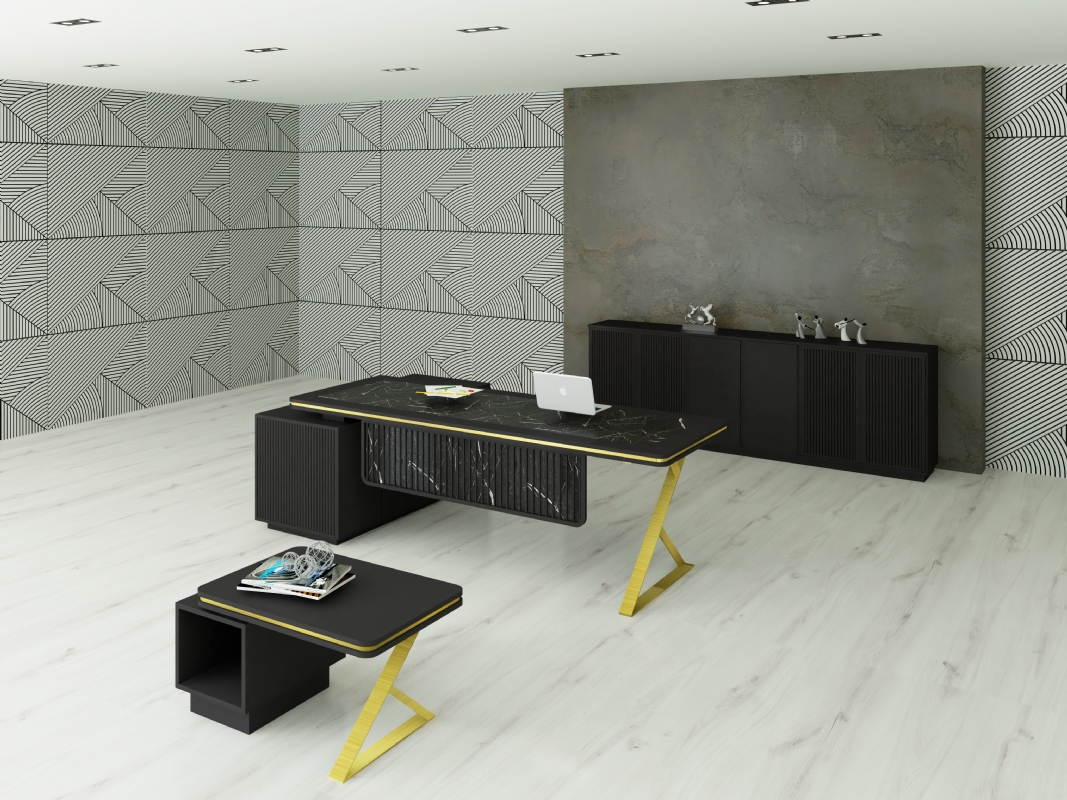 Ofis alanlarınıza modern bir dokunuş katacak bu şık çalışma seti, kaliteli ahşap malzemesiyle öne çıkıyor. Zarif cilası, ofisinizin atmosferini canlandırırken, ergonomik tasarımı uzun saatler süren çalışmalarda konfor sağlar. Fonksiyonel yapısı ve geniş yüzey alanı, verimliliğinizi artırmak için idealdir. Sade ama etkileyici detayları, her türlü ofis dekoruna uyum sağlarken profesyonel bir çalışma ortamı oluşturmanıza yardımcı olur. İş yerinizdeki verimliliği artırmak ve şıklığı yakalamak için mükemmel bir tercihtir.